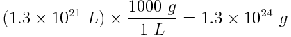 One liter of pure water has a mass of 1000 g. Assuming that the density of seawater is close to that of pure water, the mass of the world’s oceans is: